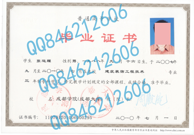 成都学院(成都大学)10年毕业证校长签名样本图片