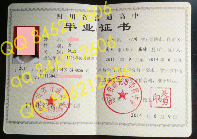 四川省金堂实验中学2014年四川省高中毕业证样本