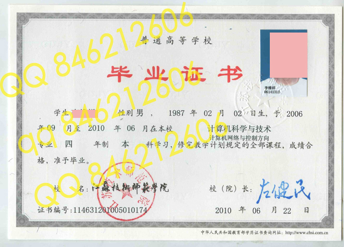 江苏技术师范学院毕业证样本