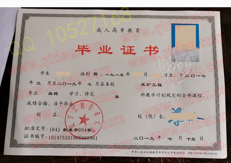 辽宁工程技术大学成人教育2019年毕业证样本(模板)