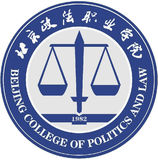 徽志:双圆套圆形徽标,中间是由“天平”和打开的书形组成的图案,标有“1982”字样;外环上方是欧阳中石题写的校名,下方是“北京政法职业学院”的英文大写。