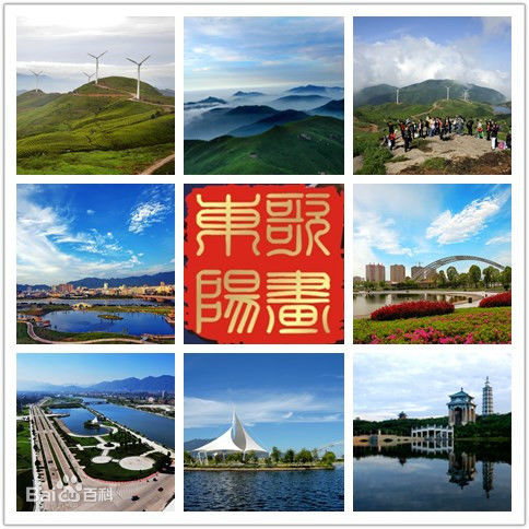 东阳市境内以丘陵为主,占总面积的54.19%,平原占总面积的30.85%。会稽山、大盘山、仙霞岭延伸入境,形成三山夹两盆、两盆涵两江的地貌。地势东高西低,中部山峦自东向西,将境域分为南乡和北乡。境内最高峰东白山,主峰称太白峰,位于虎鹿镇北部边境会稽山脉,海拔1194.6米。全市最低点白云街道吴山村,海拔67米。[8]